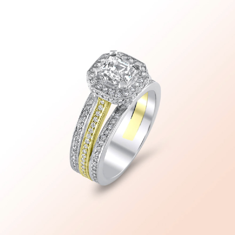 Asher Cut Center Diamond: 1.03Ct. Color: I, Clarity: VS2 EGL