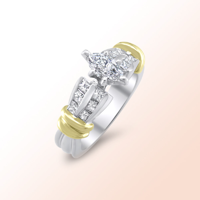 Platinum & 18k.y. diamond engagement ring   1.23Ct.