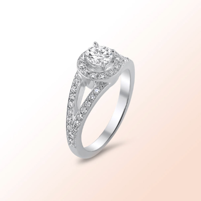 Brilliant Cut Center Diamond: 0.50Ct. Color: H, Clarity: VS1 EGL USA.