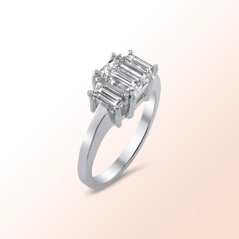 14k.w. Emerald Cut & Trapezoid Diamond Engagement Ring 1.65Ct.