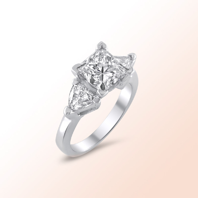 Princess Cut Center Diamond: 3.03Ct. Color: H. Clarity: Si2
