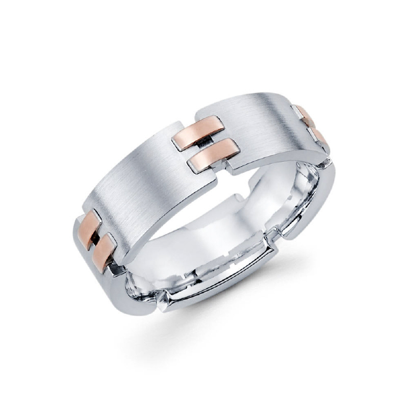 7mm 14k two tone white gold men's wedding with rose gold.