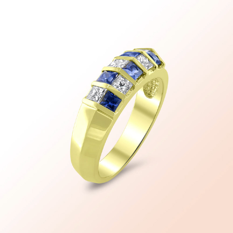 14k.y. Sapphire Princess Cut Diamond Ring 1.12Ct.