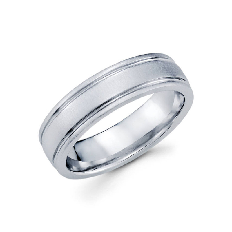 6mm 14k white gold satin finished men's wedding band contains high polished edges.