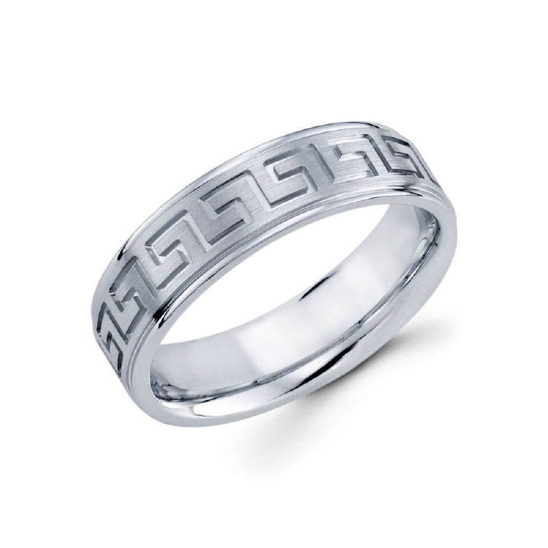 6mm 14k white gold men's wedding band features a modern design that goes throughout the entire ring.