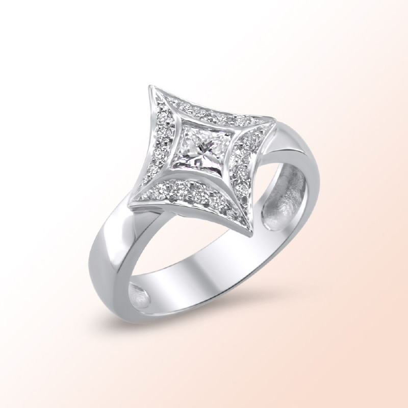 Princess Cut Diamond: 0.44Ct. Color: E. Clarity: VS1.