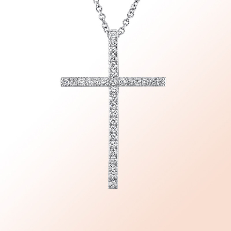 14k.white Gold Diamond Cross 0.29Ct.