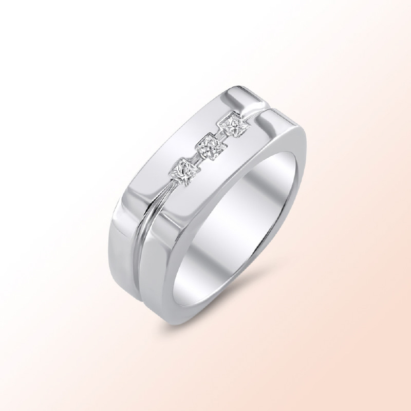 14k. Whtie Man's ring with 3 princess cut diamonds 0.30Ct.