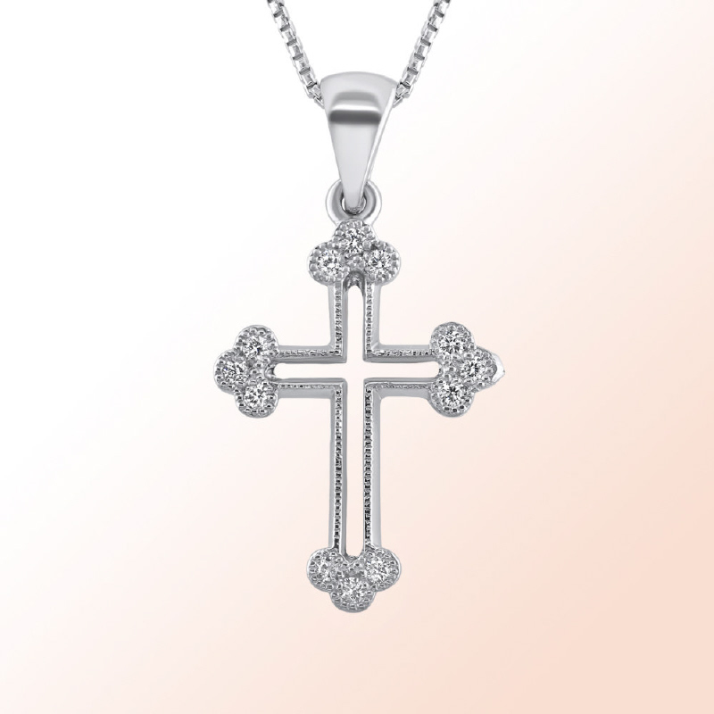 14k.white Gold Diamond Cross pendant 0.12Ct.