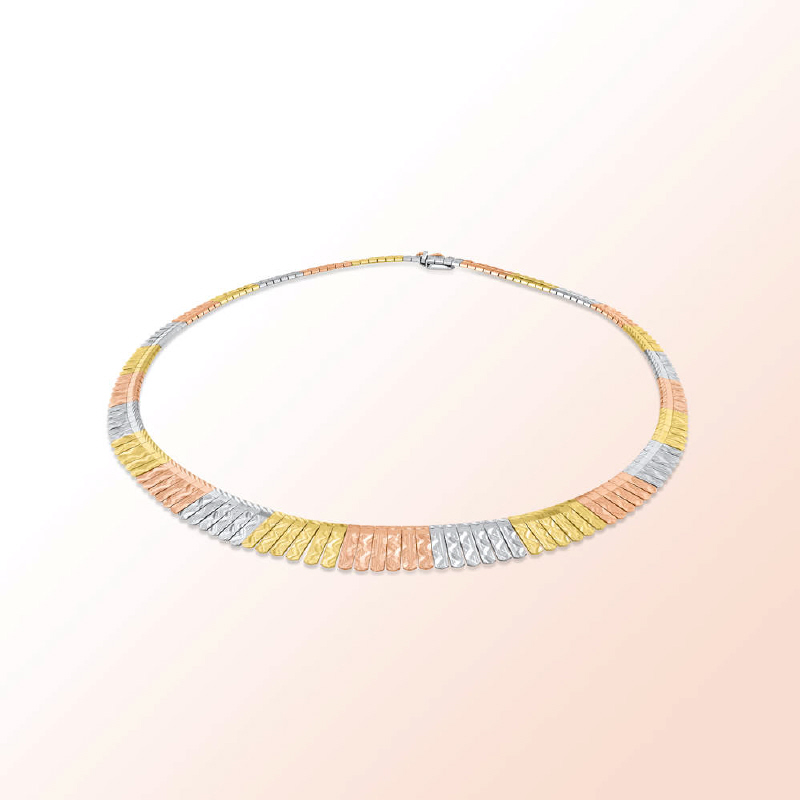 18K. Tricolor Gold Cleopatra Necklace with diamond cuts                                                                                               18K. Tricolor Gold Cleopatra Necklace with diamond cuts