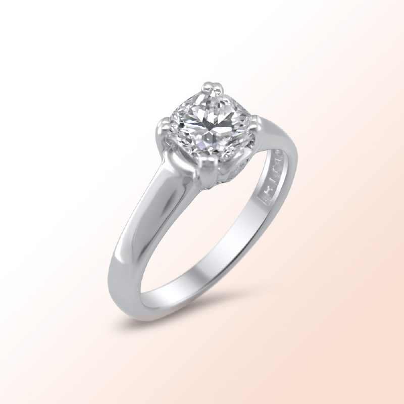 18k.w. GoldSolitaire Modified Cushion Cut Diamond Engagement Ring 1.01Ct. Color: J Clarity: VS2