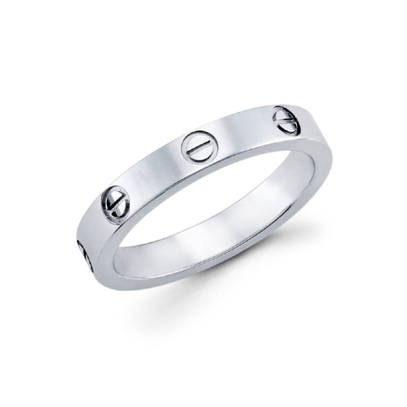 3mm 14k white gold ladie's wedding band consists of screw designs that go throughout the ring.