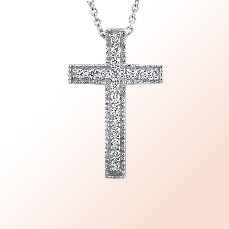 14k.w. gold Diamond Cross Pendant 0.12Ct.